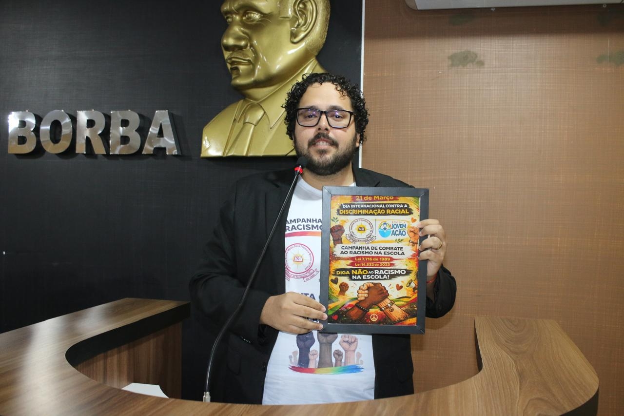 Um dos destaques da sessão foi a presença do professor Jonas Santos, acompanhado de alunos do 3º ano do CEM Dona Filomena Moreira de Paula, que compuseram a Tribuna de Honra. Na ocasião, foi apresentado ao plenário o selo recebido pela instituição em reconhecimento à campanha de combate ao racismo no ambiente escolar. O CEM Dona Filomena Moreira de Paula é a única escola do município e da regional a receber tal honraria, evidenciando seu compromisso com a promoção da igualdade e da educação cidadã.