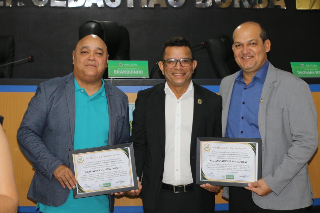 Na mesma ocasião, o vereador Paulinho Cavalcante foi autor das homenagens ao senhor Jessé Alves do Nascimento, em reconhecimento aos relevantes serviços prestados ao município e ao Estado, e ao senhor Saulo Sardinha Milhomem, pela nomeação como presidente da Agência Tocantinense de Regulação, Controle e Fiscalização (ATR).