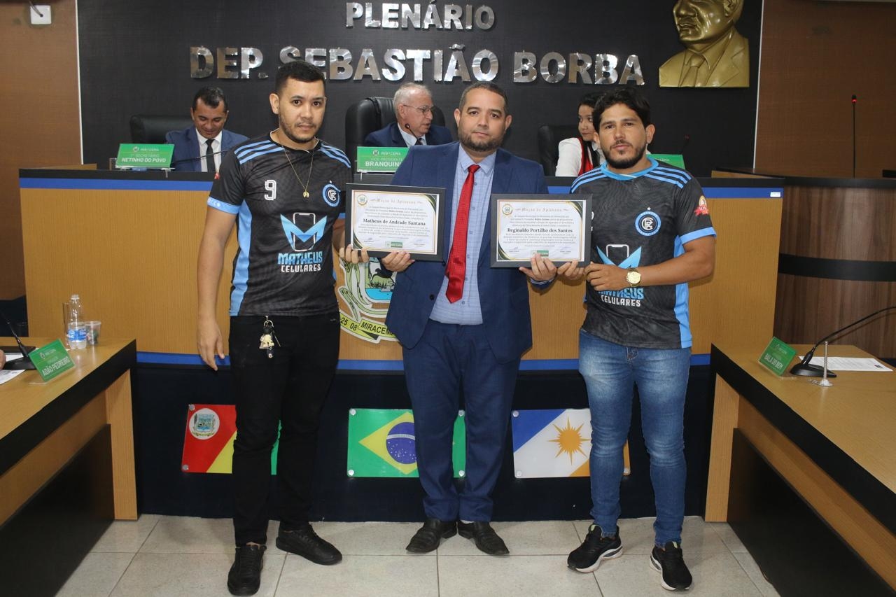 O vereador Núbio Gomes também apresentou propositura em homenagem ao jovem Bruno Josué, reconhecido pelo destaque e trabalho de cobertura exemplar na área esportiva do município. Ainda de sua autoria, a Câmara prestou homenagem aos campeões do Campeonato de Futebol Amador de 2024, o Resenha Esporte Clube, celebrando o desempenho e dedicação de seus dirigentes: Márcio Pereira Barbosa, Rodrigo da Luz Andrade, Reginaldo Portilho dos Santos, Matheus de Andrade Santana e Mateus Campos.